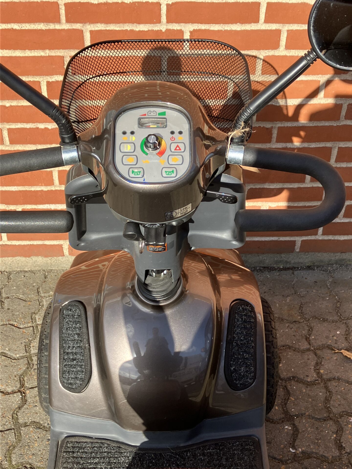 Scooteren har en lille rids eller skramme her og der, men fejler intet udover lidt kosmetisk.