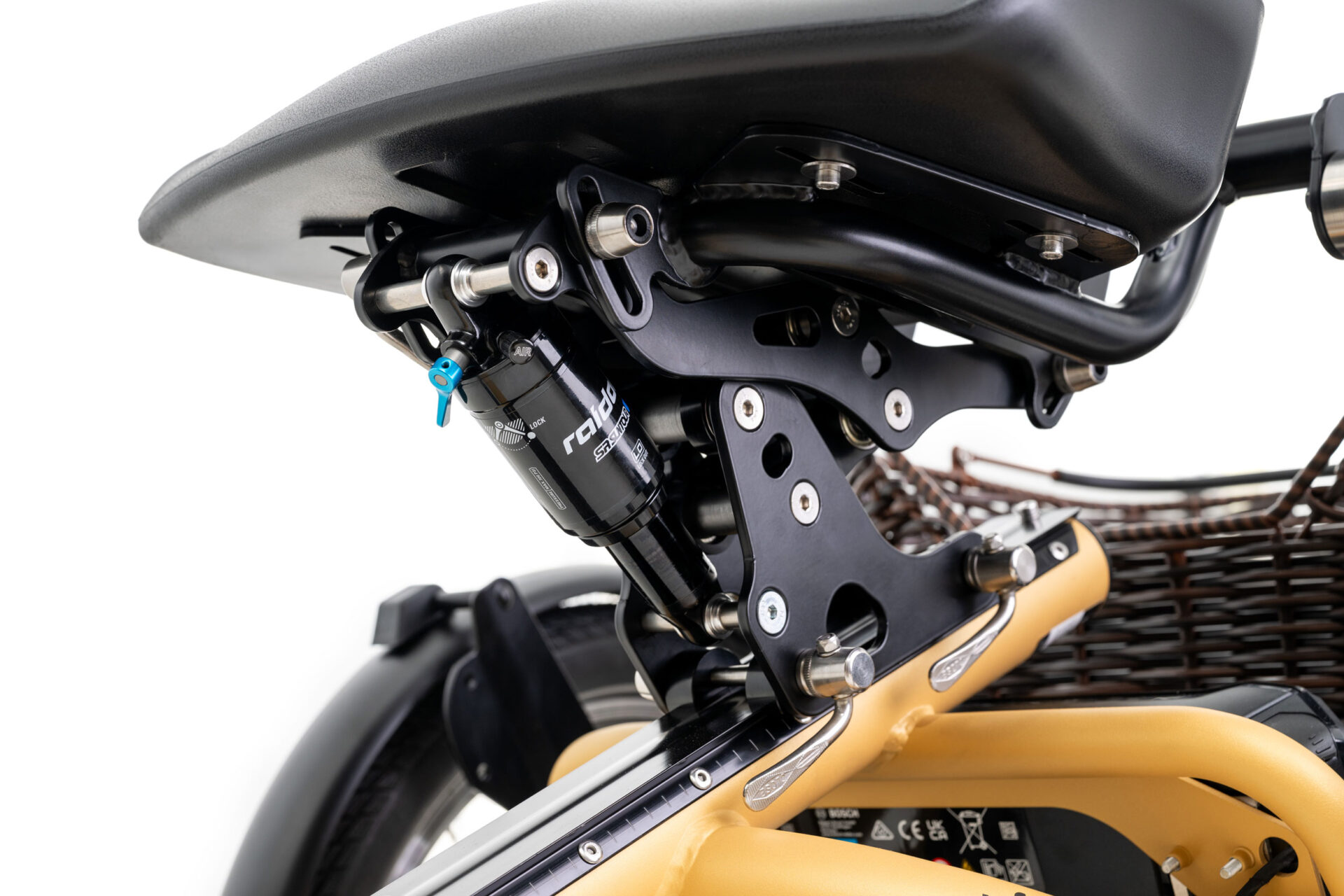 Cyklen har komfort affjedring v. bagstel, som effektivt absorberer ujævnheder i underlaget og forbedrer den samlede kørekomfort. Den solide trehjulede konstruktion, sikrer en stabil og kontrolleret køreoplevelse.