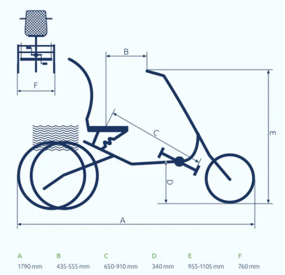 Cyklen er udstyret med et stort og komfortabelt sæde, der kan justeres i både højde og hældning. Ryglænet kan ligeledes tilpasses individuelt for at sikre en ergonomisk korrekt og afslappet siddeposition. Konstruktionen muliggør, at føreren kan nå jorden med fødderne uden at rejse sig fra sædet.